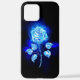 Blooming, abstract rose from blue flame on black background. Fire rose.