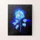 Blooming, abstract rose from blue flame on black background. Fire rose.