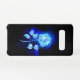Blooming, abstract rose from blue flame on black background. Fire rose.