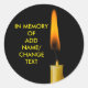 Burning wax candle against the black background. You can add your own text to make a custom product to express sympathy for any person, place or event. Round sticker in memory of... Add your text or change the text. Mirror image