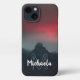 Landscape photograph of an unreal sunset taken at lake Lago di Fusine, Italy. Red colour is a bit exaggerated but standing there in real life it really felt like this. In a short moment the sun broke through the fog and just as fast disappeared. With a personalizable monogram in the mountains.