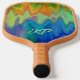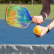 A beautiful pickleball paddle with beautiful red, blue green and yellow colors. Original artwork by W.B.