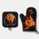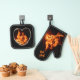 Burning Heart on Fire Hot Stuff Flames Oven Mitt & Pot Holder Set