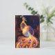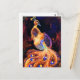 a colorful design of a phoenix peacock hybrid being in bright orange and blue colors on black background as a decorative postcard
