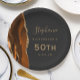 Burnt Orange Agate Marble Gold Dark 50th Birthday Paper Plate