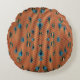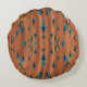 Burnt Orange and Blue Fabric Pattern Round Pillow