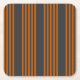 Burnt orange and charcoal five stripe pattern square paper coaster