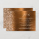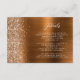 This elegant modern wedding details enclosure card features a burnt orange brushed metal background image sprinkled with faux diamond glitter. Customize the white text, with the title "Details" in stylish handwriting script and the remaining text in sans serif font. The reverse side features a matching burnt orange brushed metal and faux glitter design.