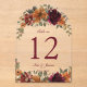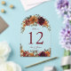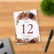 This exquisite acrylic table number features a stunning burgundy, burnt orange, rust, copper floral design in an arch shape. Easily personalize each table number by clicking the "Edit Using Design Tool" button to re-arrange and format the text to your liking. Choose from two exquisite finishes: Clear or Frosted, and select between two stylish corner options: Rectangle or Arched.