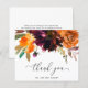 Rustic style boho floral budget wedding Thank You Card featuring a watercolor painted floral bouquet with warm and earthy shades of burnt orange, terracotta and deep burgundy along with some greenery. The back has your custom thank you message. This elegant flat Thank You card with the rich shades of autumn is great for a fall wedding.