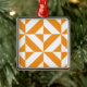 Burnt Orange Geometric Deco Cube Pattern Metal Ornament
