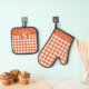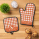 Burnt Orange Gingham Plaid Chequered Monogrammed Oven Mitt & Pot Holder Set