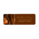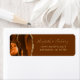 The left-hand edge of this elegant modern wedding invitation return address label features a burnt orange watercolor agate border trimmed with faux gold glitter. The customizable text combines gold-coloured handwriting and copperplate fonts on a nutmeg brown background.