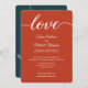 Trendy, elegant, warm earth tone wedding colour palette of burnt Orange, Green Elopement wedding reception invitation. This design features a modern "Love" calligraphy script. Personalize this elopement wedding reception invitation with the bride and groom's names all the party details about the elopement and wedding reception. Include a wedding website for RSVP too. This chic and elegant layout design is easy to customize. For a fall wedding.