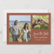 This minimal burnt orange save the date card with a QR code makes it easy for guests to get the details for your special day. Two of your favourite photographs completes your personalized announcement