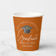 These modern burnt orange custom senior graduation party cups features your high school or college name for the class of 2025. Customize with your graduating year under the chic handwritten script and grey grad cap for great formal personalized graduate decor.