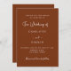 Burnt orange, rust coloured background. Personalize and add your names and the details. White text.