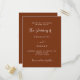 Burnt orange, rust coloured background. Personalize and add your names and the details. White text.