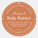 Burnt Orange Script Handmade Body Butter Label round sticker featuring a rich burnt orange background with white script and serif typography. The design clearly presents your business name, product title, ingredients, and weight in a clean, easy-to-read format that feels both handmade and professional. Ideal for organic skincare jars, whipped body butter packaging, fall product lines, gift sets, and small business branding. Easily personalize with your details.