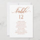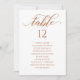 Modern and elegant design printed Burnt Orange Calligraphy Script Table Number Seating Chart Cards that can be customized with your text and add each table number card to your cart, one by one. Please click the "Customize it" button and use our design tool to modify this template. Check out the Graphic Art Design store for other products that match this design!