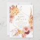This baby shower invitation features rustic watercolor flowers in terracotta, burgundy, burnt orange, yellow, blush with beige and brown pampas grass, and a gold hexagon frame. For more advanced customization of this design, please click the "customize further" link. Matching items are also available.