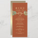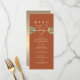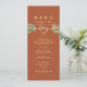 Modern, elegant rustic terracotta burnt orange wedding menu with gold rope heart and eucalyptus greenery.