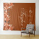 This elegant wedding backdrop tapestry is the perfect display for your special day. The burnt orange background design features an elegant customizable text and rustic burnt orange floral design. Perfect for a rustic, earthy, boho or autumn wedding. This design is part of my Terracotta Treasures Wedding Collection. Check it out here https://bit.ly/terracottatreasures.