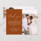 Budget Wedding Thank You Cards that have a photo on the front and back. The Thank you cards contain a modern hand lettered cursive script typography that are elegant, simple and modern to use after you wedding day celebration.