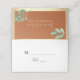 This charming wedding place card features a rustic, botanical design with a warm terracotta burnt orange background. Adorned with gold accents and watercolor greenery, it combines boho elegance with a touch of sophistication. The simple calligraphy script provides space for the guest's name and table number, adding a personal and stylish touch to your special day.