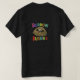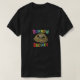The t-shirt features the text "Burrow Buddies" in a fun, mismatched colour palette. Each letter bursts with a different vibrant shade, creating a cheerful and eye-catching design.