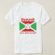 An editable title and slogan accompanies the central motif with white diagonals over red and green of the Burundian flag on the front of this t-shirt. The back displays a detailed map of Burundi.