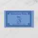 Monogram, name and business centred within a double lined border with square keys in the corner. Background in light light blue colour, Text is dark blue. On back, personalize with name, title, address, contact information.