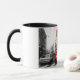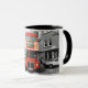 Photo d'un bus londonien sur une tasse - idéal pour un cadeau ! Une tasse unique et élégante montrant l'historique bus 73 Routemaster de London Transport qui a servi les résidents et les visiteurs à Londres pendant de nombreuses décennies avant d'être retiré de service en septembre 2004. Photo prise sur la rue Stoke Newington Church au milieu des années 1990 par Caroline Webb, numériquement traitée en 2009.© Caroline Webb