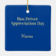 This ornament is a golden silhouette of a public transportation bus. This can be given to given to your favourite bus driver for Christmas. Or, it can also be used for Bus Driver Appreciation Day which is annually on February 22 that's on the back. But you can edit that to say anything i.e. Merry Christmas, Happy Birthday, Happy Retirement, etc. On the back you can also customize this with a Name. Or put whatever you want on the back. Due to the design style, this can only be purchased on SQUARE ornaments. Designed by Sheila Cicchi, Brownielocks.com. All Rights Reserved.