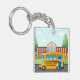 Un autobus scolaire et son chauffeur devant une école. Cette conception semble vraiment efficace sur ces Porte - clés