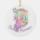 Customizable colourful map ornament of South Korea with Busan city location marked with a flag. City name also in Hangul. Unique South Korean family or adoption or Christmas gift for families with children from Busan. Designed by Hendrika of www.RedThreadMaps.com