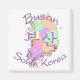 Beautiful customizable hand-rendered colourful map of South Korea with Busan city location marked with a flag. City name also in Hangul. Unique South Korean family or adoption gift for families with children from South Korea. Designed by Hendrika of RedThreadMaps.com