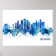 Blue Watercolor Skyline of Busan, a large port city in South Korea