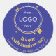 A blue anniversary sticker adorned with the company / business logo on black backdrop, creating a festive decor element for post or gifts. For any jubillee / anniversary of companies or small businesses.