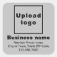 Customizable sticker that you can put your business name, address and phone number. You can use it as marketing material to advertise your business or to promote your brand name to customers or clients. Sticker that you can use to build brand name awareness. You can also use it as accessory of product packaging materials. Designs are black texts on grey background and square shape. To customize this sticker, upload your business logo, type your business or company name, address and phone number. After uploading logo and typing texts, please check the appearance. If the appearance is pleasing to you, you can place your order now. If you need to resize and move the logo and texts to fit on this sticker or on other sizes that you will choose, please change in the design tool. You can also make other changes according to the appearance that you prefer in the design tool such as changing the background colour, font colour and font style.