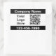 This business sticker has white text at the top. You can edit the text to show your business name or a custom message. Two display images are below the top line of text. One image can be replaced with your company logo. The other image is for a QR code. (Remember to enter your website URL for the QR code to work correctly.) Digits that you can change to the correct phone number are at the bottom.