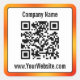 You must enter your website URL to create your custom QR code. A line of black display text is at the top and bottom. You can edit the text to show your company name, website, or a custom message. The sticker has an orange gradient border that is not made of foil.