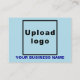 Calling card that you can customize to put your business name and other information of your business. You can use it as marketing material to advertise your business or to promote your brand name to customers or clients. Customizable calling card that you can use to build brand name awareness. You can also use it as accessory of your product packaging material or as package insert. Design colours and shape are black and dark blue texts on light blue background and landscape format rectangle shape. To customize this calling card, upload your business logo, type your business name, address, phone number, e-mail and website or social media page. After uploading logo and typing texts, please check the appearance on front and back sides. If the appearance is pleasing to you, you can place your order now. If you need to resize and move the logo and texts to fit on this calling card, please change in the design tool. You can also make other changes in the design tool according to the appearance of this calling card that you prefer such as changing the background colour, font colour and font style.