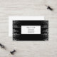 This business card is shown in a black and white abstract pattern with black text.