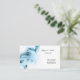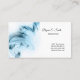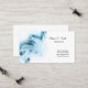 This business card is shown in a blue colour abstract pattern with black text.