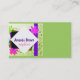business card template colourful whimsical art abstract design playful and bold on lime green for stylist. Original abstract art copyright Ann Powell