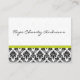 Business Cards Black and White Damask Floral Lime
