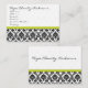Black and White Damask Floral with Lime Trim-Custom Business Cards