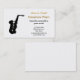 Business cards for saxophone players or instructors; white and golden music design with silhouette of a saxophone; design is personalized with customizable text fields for adding your name, business, address and other informations