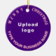 Merry Christmas! Ceramic ornament with Merry Christmas greeting texts, your business or company name and logo. Design is pink texts on purple background and on circle shape. Ornament to decorate the Christmas tree in your store, shop or office. Ornament to visibly greet your customers this holiday season and to advertise your business or promote your brand name. Customize it and use it to build brand name awareness. Please check the appearance after uploading logo and typing your business name. If the appearance is pleasing to you, you can place your order now. If you need to resize and move the logo and texts to fit on this ornament or on other styles that you will choose, please change in the design tool. You can also make other changes according to your preference in the design tool such as changing the ornament colour, font colour and font style. Merry Christmas! Wishing you more sales this holiday season.